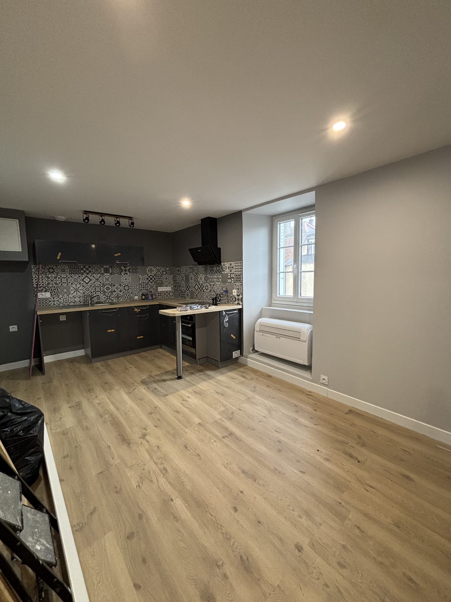 RUE DE VERSAILLE - AURILLAC Au 1er étage d'un petit immeuble, appartement T2 entièrement rénové comprenant une cuisine équipée ouverte sur le séjour, une chambre, une salle d'eau et un WC séparé.
