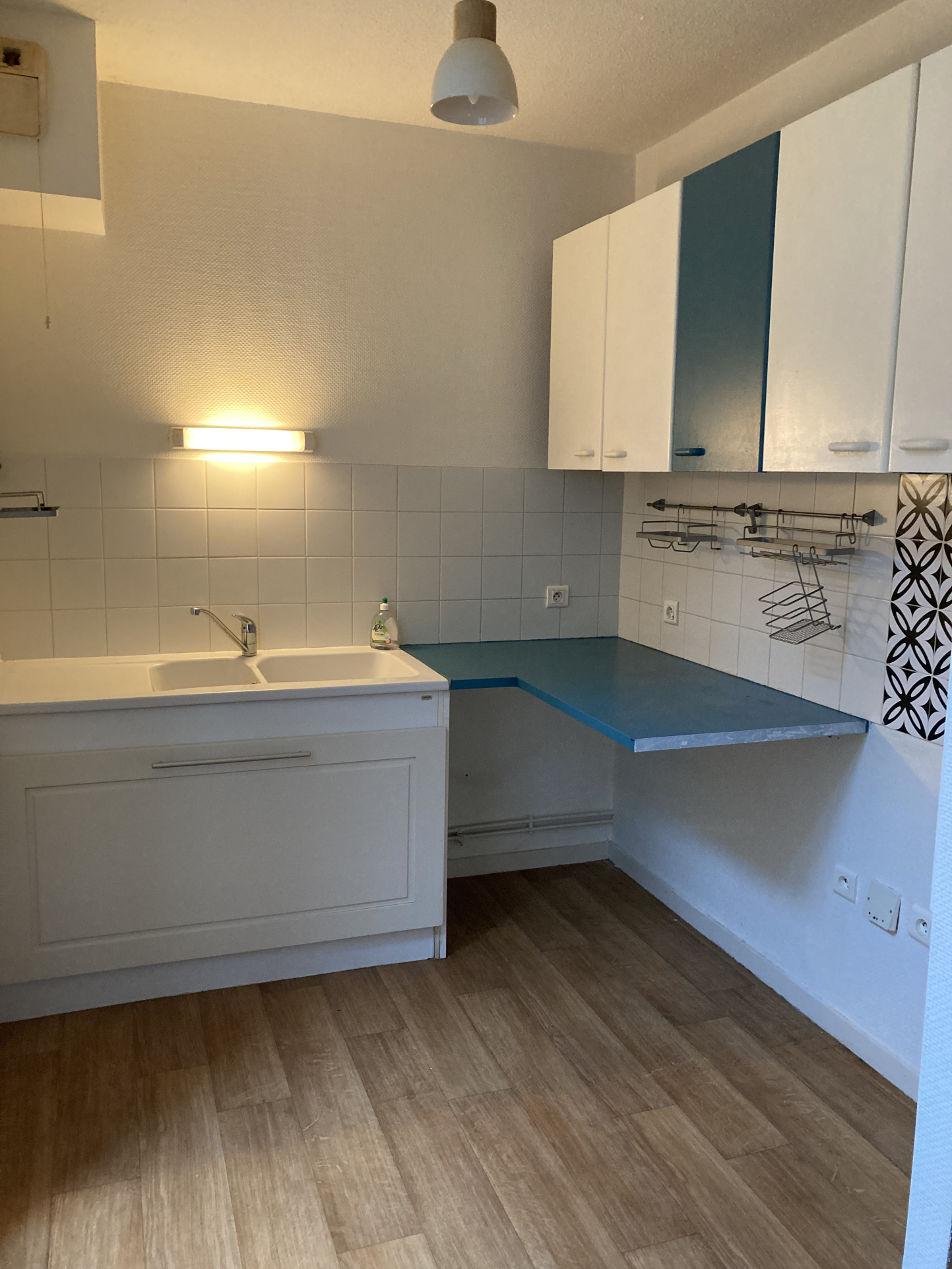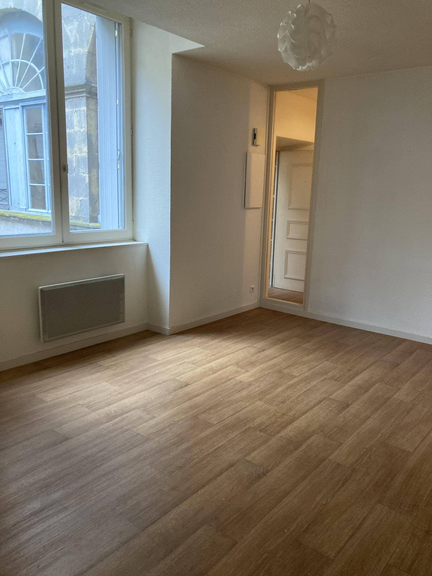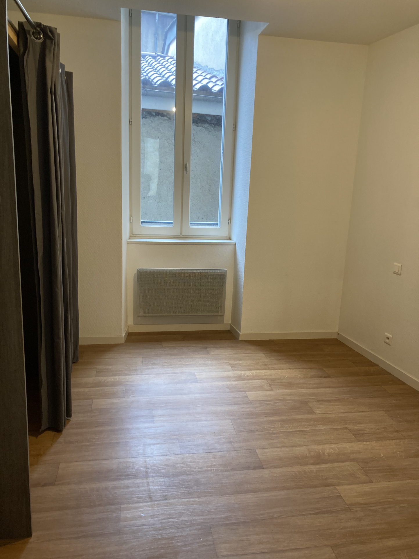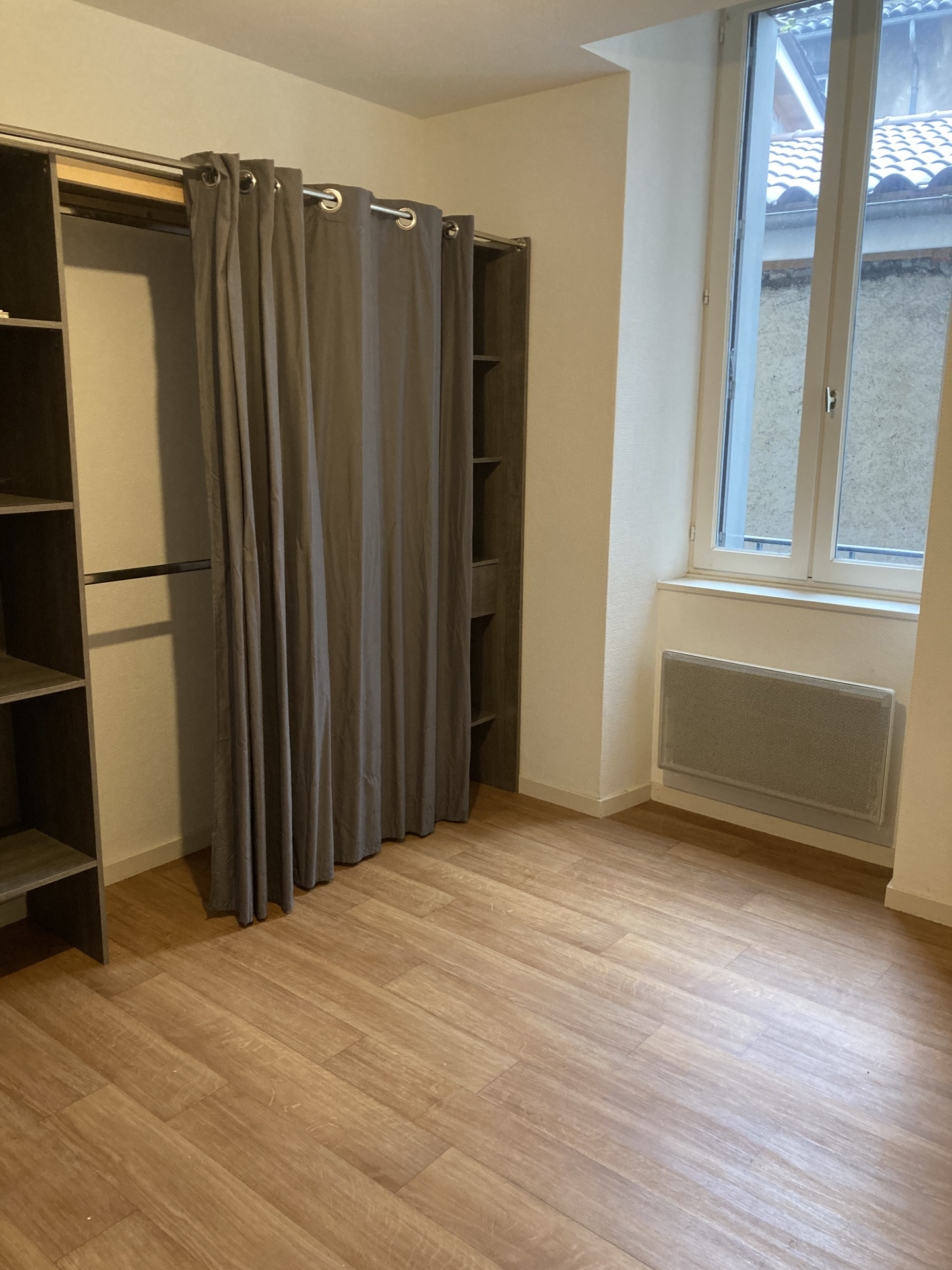 CENTRE VILLE - AURILLAC Appartement T2 comprenant une entrée avec placard, un séjour avec coin cuisine, une chambre,salle de bain et un WC