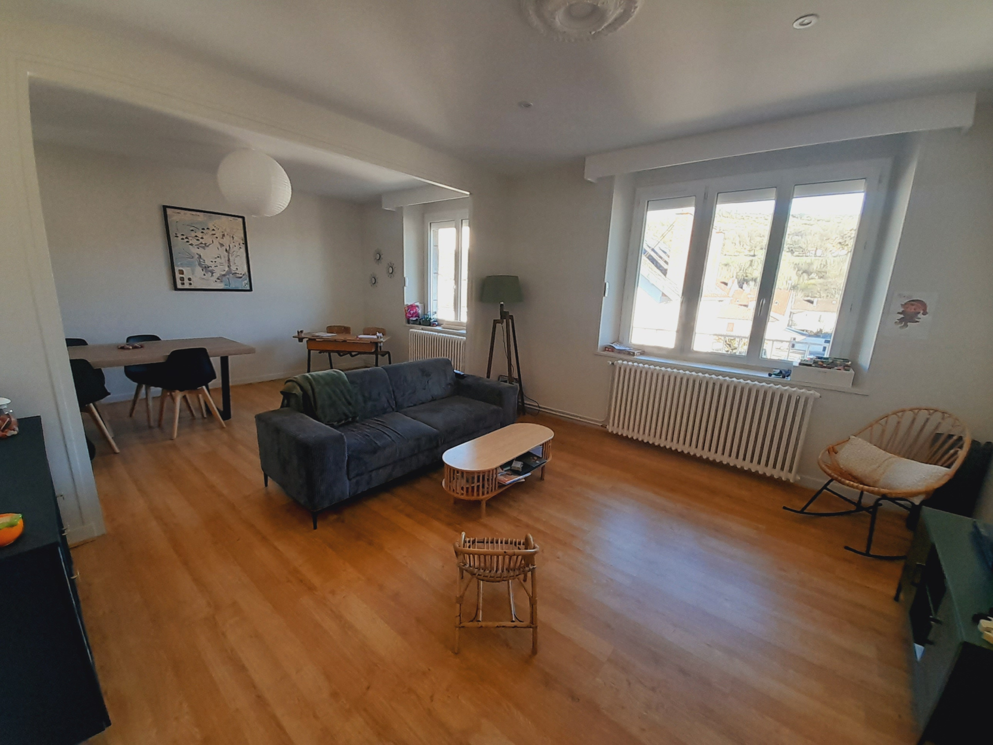 Dans un peit immeuble calme, appartement T3 au 2e et dernier étage comprenant une entrée avec cellier, une cuisine équipée ouverte sur un séjour , deux chambres avec placards, une salle d'eau et un WC séparé.