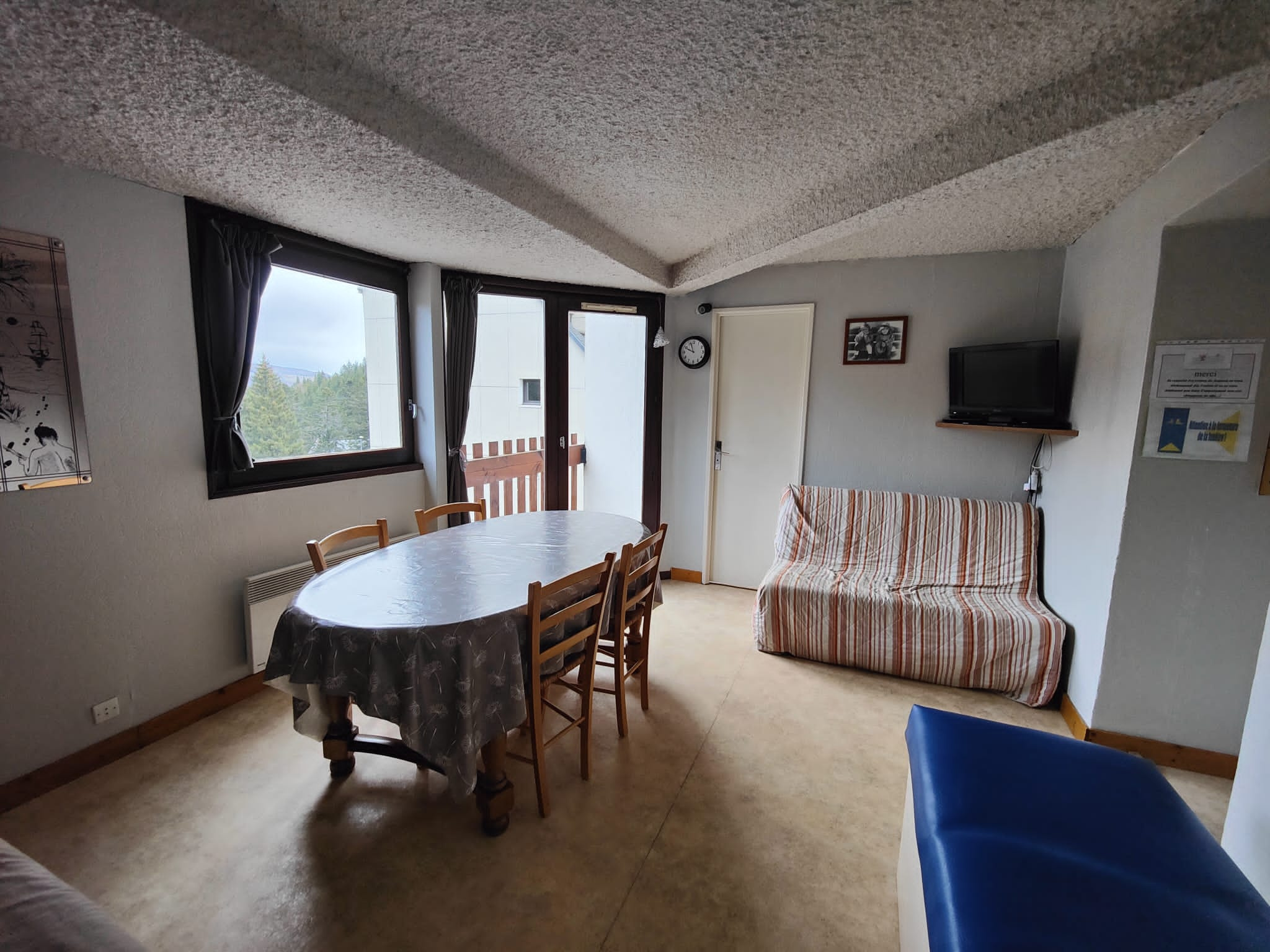 A venir découvrir, en plein centre station, appartement de type t2 composé d'une pièce de vie (avec coin cuisine équipée) donnant sur un balcon, d'une chambre avec lits superposés, d'une salle de bains avec baignoires et wc.